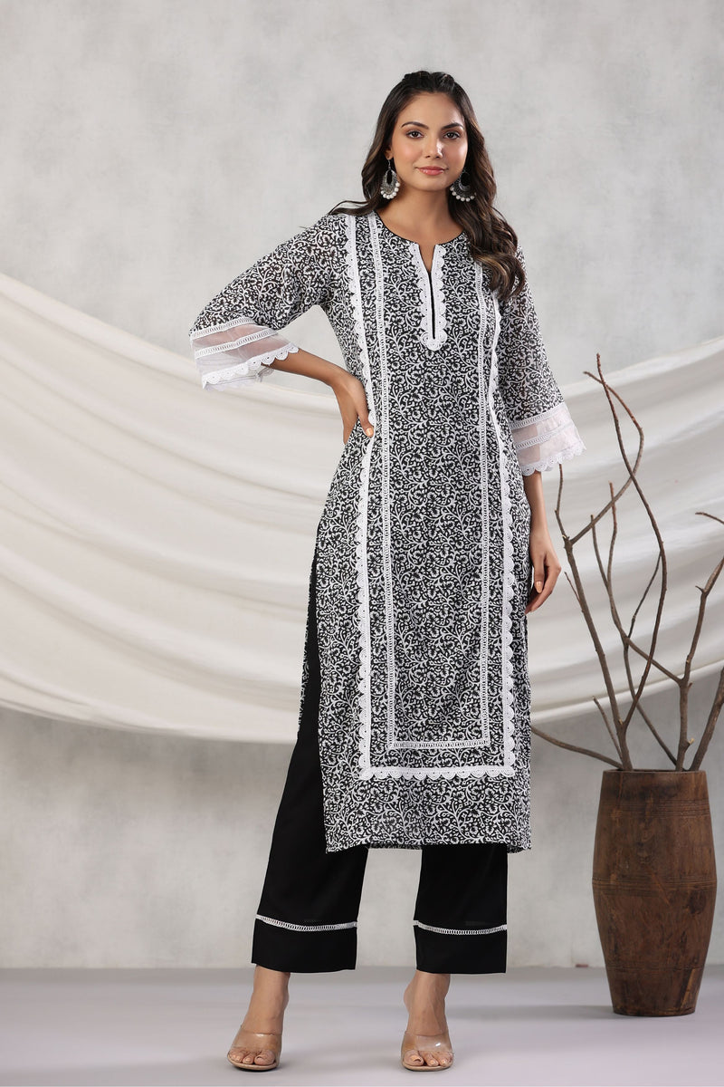 | Kurta Style | Mul cotton printed kurta with attached lining embellished with hakoba laces and organza |