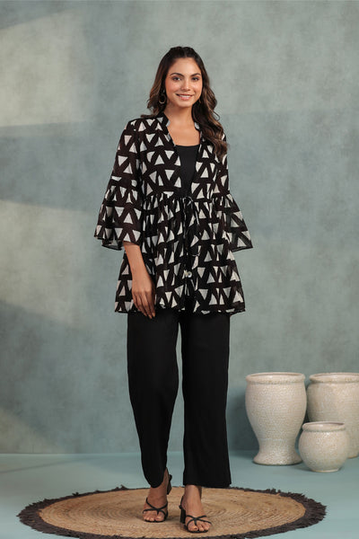 Black is an ideal shade for all trousseaus, be it traditional or indo-western. Discover our wide collection of elegant black colour ensembles for women. From black pure chanderi suit sets and black suit set to black evening dresses, comfort sets, hand block kurta pant sets, and short sets, this collection offers something for everyone. In addition, all our outfits let you create a luxurious and sophisticated look with ease. With its timeless designs, quality craftsmanship, and attention to detail, this collection is sure to become a wardrobe staple.