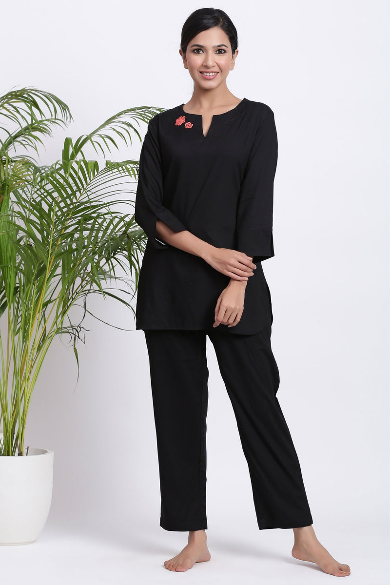 The Envy Black Loungewear Set is the perfect way to lounge in style. Crafted from soft fabric, this breezy ladies loungewear set is the ultimate wardrobe-essential for those days spent working from home. Enjoy the day in comfort and elegance with this stylish collection. And for those who love an afternoon nap, the Envy Black Loungewear Set is a must-have. Treat yourself to the luxury of this set and experience the ultimate comfort and style.