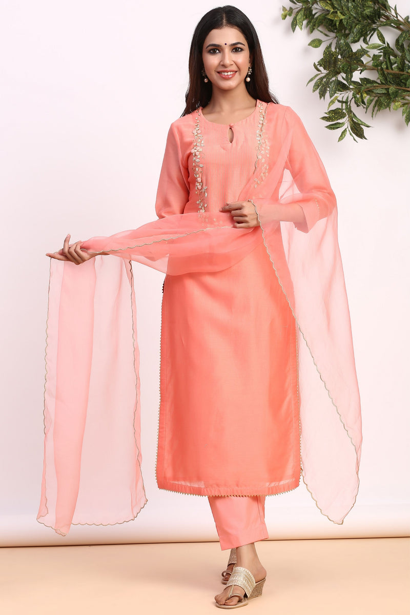 Cosmic Peach Pure Chanderi Suit Set