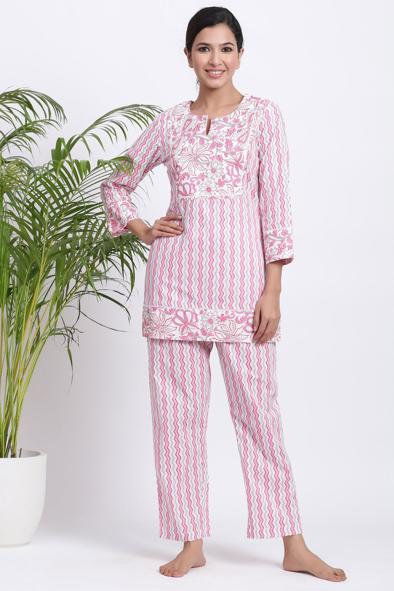 Indulge in the ultimate comfort with the Desert Lily Loungewear Set. Perfect for a cozy day in, this ethereal “Tree of Life” Loungewear collection will make you feel like you are in a dream. From the zig-zag stripes to the thoughtful print placements, this set will make a statement in any wardrobe. Crafted in soft Cotton fabric, you'll be able to lounge and nap all day long. Whether you're working from home or just looking to relax, the Desert Lily Loungewear Set from our women’s loungewear sets collection is a must-have.