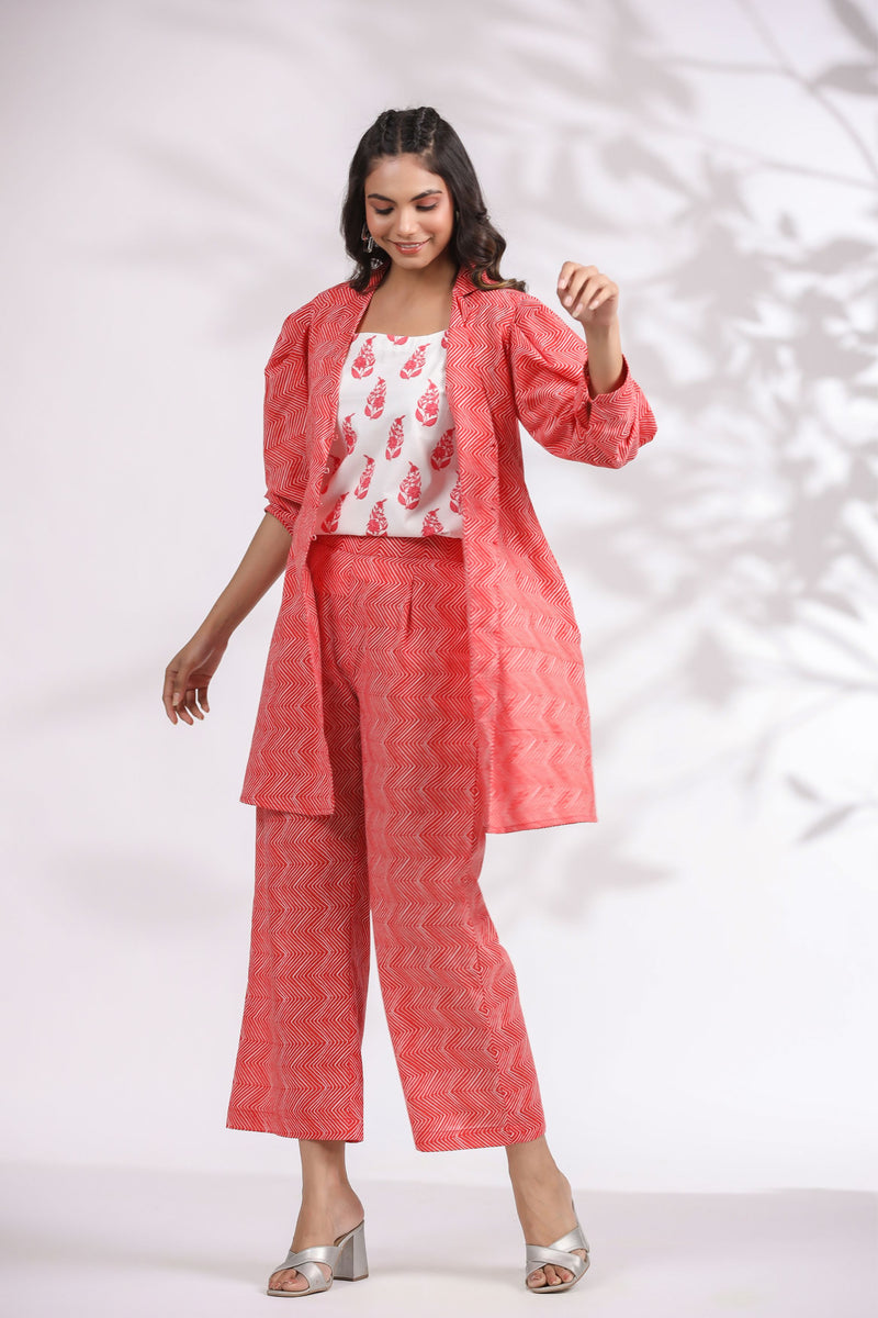Red Chevron Jacket Style Co-ord Set