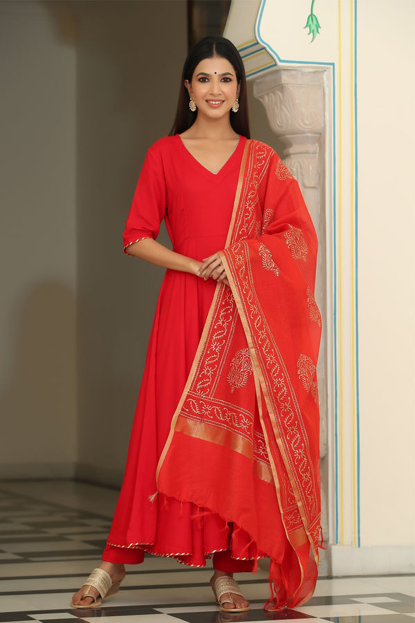 Jaipuri Rose Red Suit Set