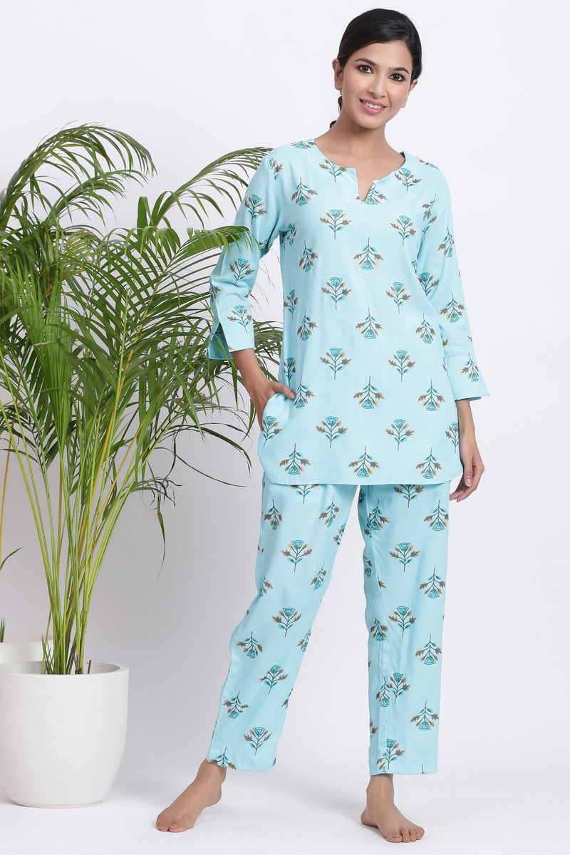 Introducing the Alice Blue Loungewear Set – perfect for all around comfort! This stylish sky blue night suit set is crafted from the softest Rayon fabric, making it the ideal choice for a comfortable day at home. The aqua color gives the set a breezy, beach-inspired look, while the relaxed fit ensures you stay comfortable all day long. Whether you’re working from home or just lounging around, this Pyjama Set is essential for your wardrobe. Get ready for ultimate comfort with the Alice Blue Loungewear Set!