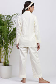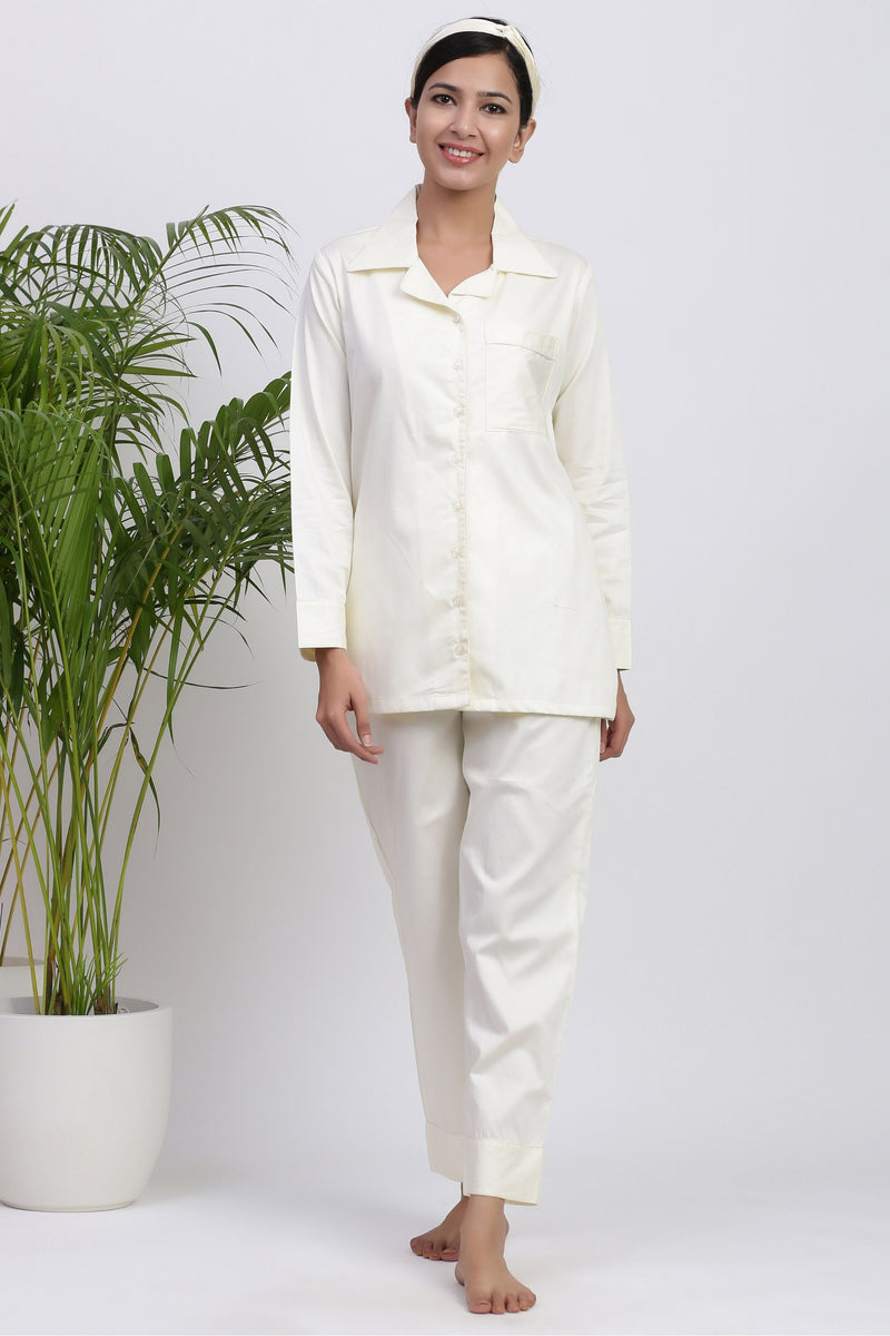 Experience the ultimate comfort and luxury in the Gillori timeless Ivory women's night suit set. This exquisite night suit is crafted from the finest 100% Egyptian cotton, making it the perfect choice for a peaceful night's sleep. The soothing ivory colour lends an elegant, timeless look while the high-quality fabric ensures long-lasting, comfortable wear. The top features a classic design with a round neckline and short sleeves, while the bottom has an elasticated waistband for a perfect fit.