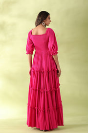 Make a statement with this Electric pink flared dress! Crafted from cotton crepe, it features an elasticated front and back for a perfect fit, as well as an elasticated square neck that can also be worn off-shoulder. Get ready to twirl to your heart's delight.