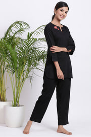 The Envy Black Loungewear Set is the perfect way to lounge in style. Crafted from soft fabric, this breezy ladies loungewear set is the ultimate wardrobe-essential for those days spent working from home. Enjoy the day in comfort and elegance with this stylish collection. And for those who love an afternoon nap, the Envy Black Loungewear Set is a must-have. Treat yourself to the luxury of this set and experience the ultimate comfort and style.