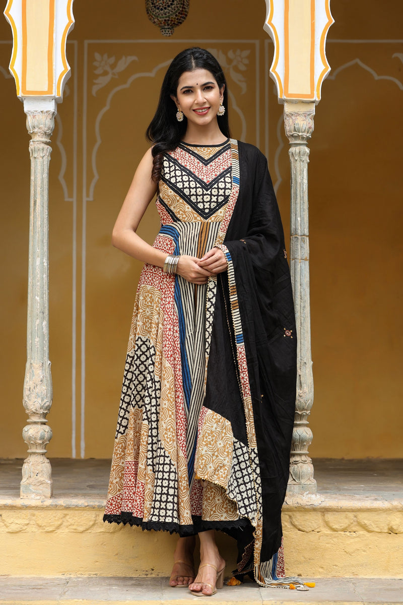Melange Jaipuri Bagru Hand-block Printed Suit Set